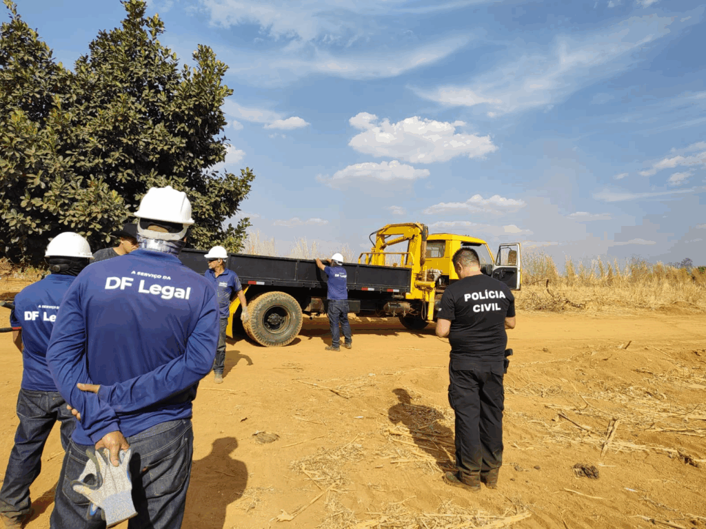 Uma ação conjunta entre Secretaria DF Legal e a 19ª Delegacia de Polícia nesta sexta-feira (12) coibiu a consolidação de um parcelamento irregular do solo que teve início há menos de seis meses na área rural do Sol Nascente. A tentativa de lotear o espaço ocorria ao lado de um córrego, dentro de uma Área de Proteção Ambiental (APA). A ação ainda contou com o apoio da Neoenergia e da Administração Regional do Sol Nascente.