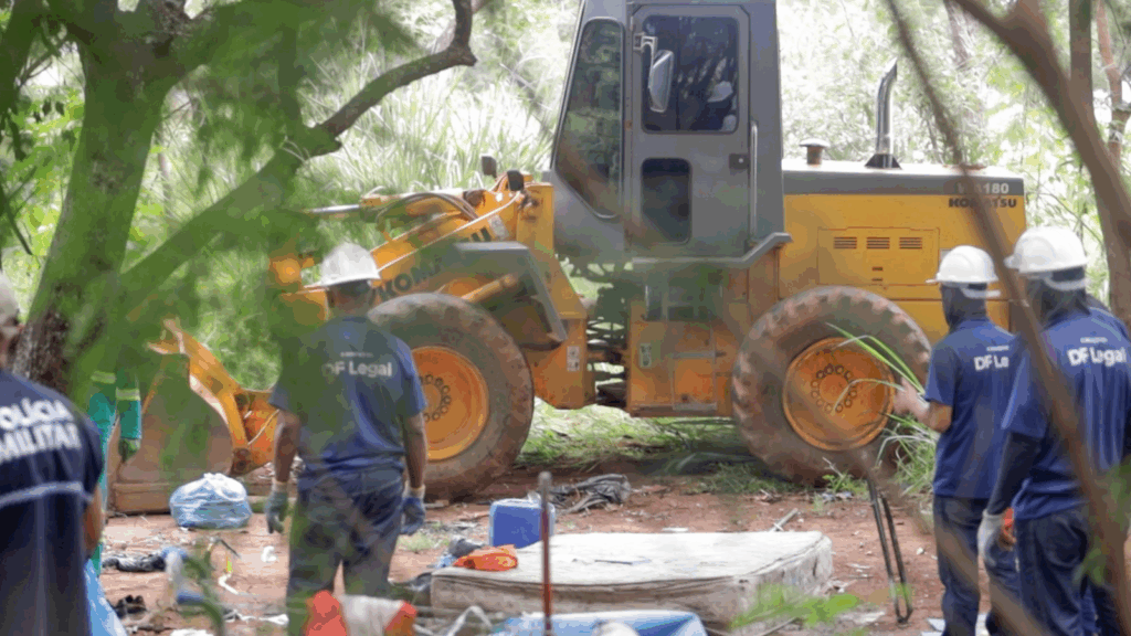 Na quinta (24), a ação chegou ao Paranoá, com visita a três pontos. Três pessoas foram localizadas, quatro estruturas desconstituídas e três caminhões de entulho retirados dos locais.