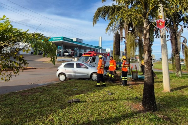 Na manhã desta segunda-feira (2), um carro destruiu uma placa de sinalização e bateu em uma árvore na 716 Norte. O caso ocorreu próximo a um atacadista da região. Em uma imagem divulgada pelo Corpo de Bombeiros Militar do Distrito Federal (CBMDF), nota-se que uma parte de um dos faróis ficou destruída. Veja a seguir: