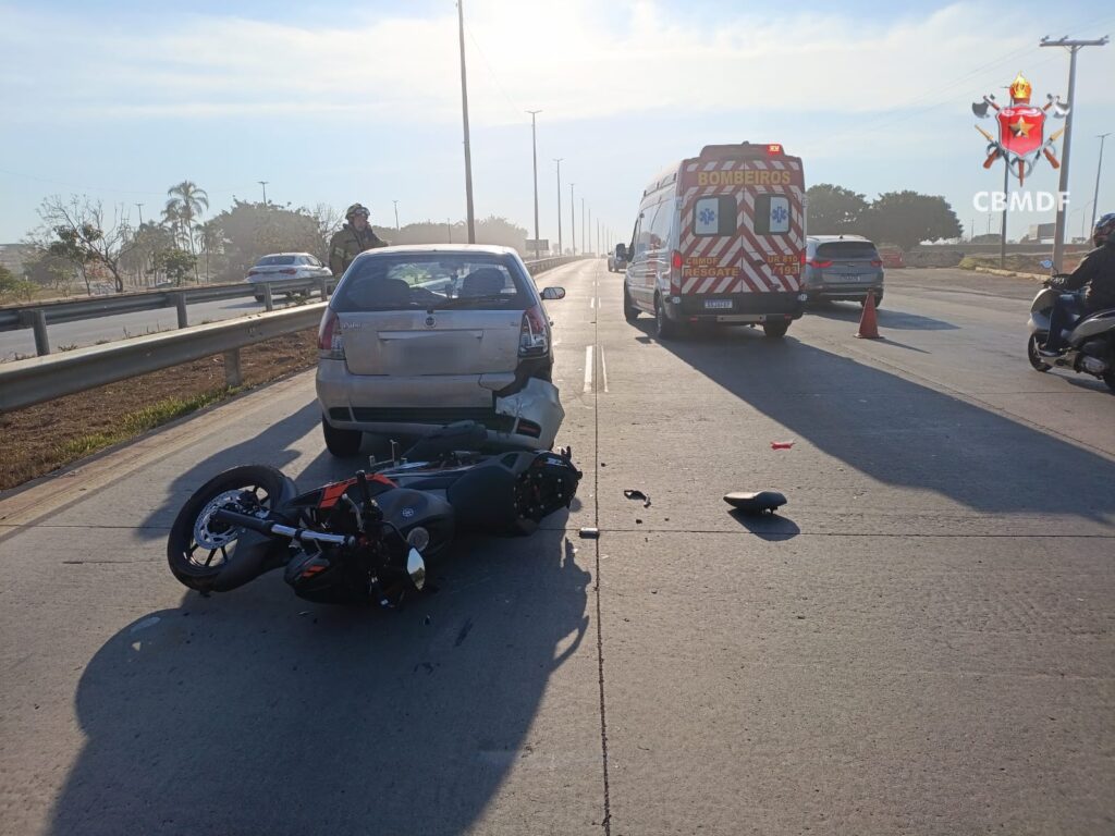 Nesta quarta-feira (1), um motociclista se feriu ao se envolver em um acidente de trânsito na via Estrutural. A vítima, que não teve sua identidade divulgada, colidiu com um carro. A situação aconteceu às 7h02 da manhã.