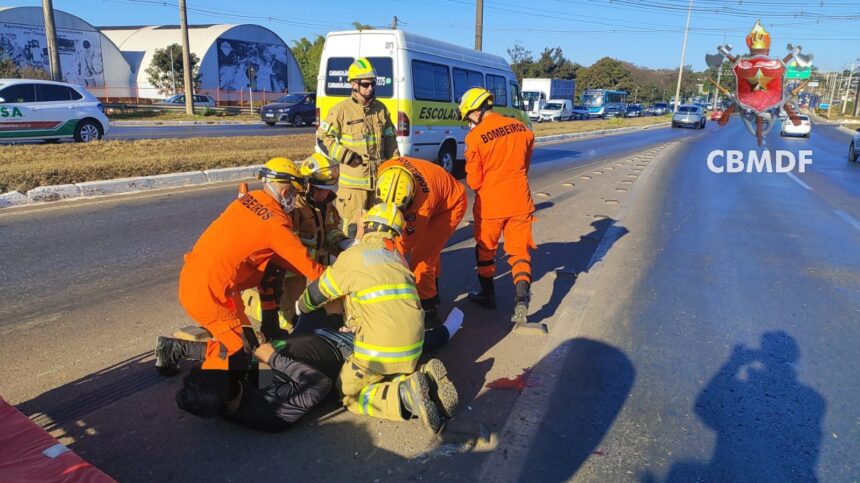 A vítima, de 42 anos, apresentou ferimentos pelo corpo. Segundo o Corpo de Bombeiros Militar do Distrito Federal (PMDF), há suspeitas de uma fratura na perna esquerda. O homem foi levado ao Hospital de Base.
