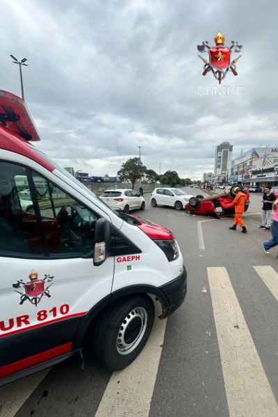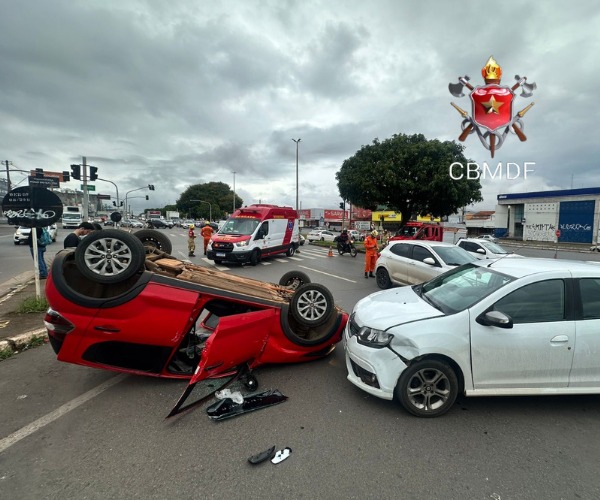 Um carro capotou após colidir com outros dois veículos, na manhã desta quinta-feira (4), no Pistão Sul. Os automóveis estavam em frente a uma malharia da região, na QS 03. O que teria motivado o acidente ainda não foi esclarecido.