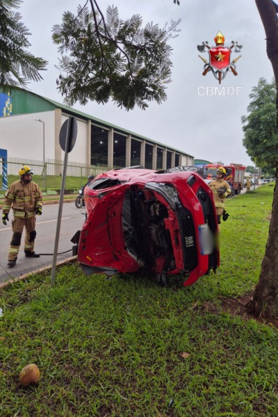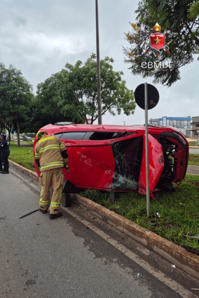 Em imagens divulgadas pelo Corpo de Bombeiros Militar do Distrito Federal (CBMDF), é possível ter uma breve dimensão da ocorrência. O veículo que capotou aparece com as rodas para cima. Veja a seguir!