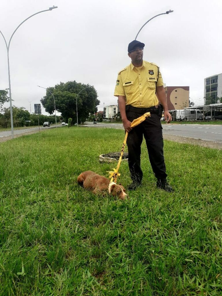 Durante a realização de patrulhamento em Taguatinga, na manhã desta sexta-feira (5), uma equipe de policiamento e fiscalização do Departamento de Trânsito do Distrito Federal (Detran-DF) se deparou com um cachorro, aparentemente desorientado, que corria pela via. O pitbull estava em risco de ser atropelado, ou causar um acidente.