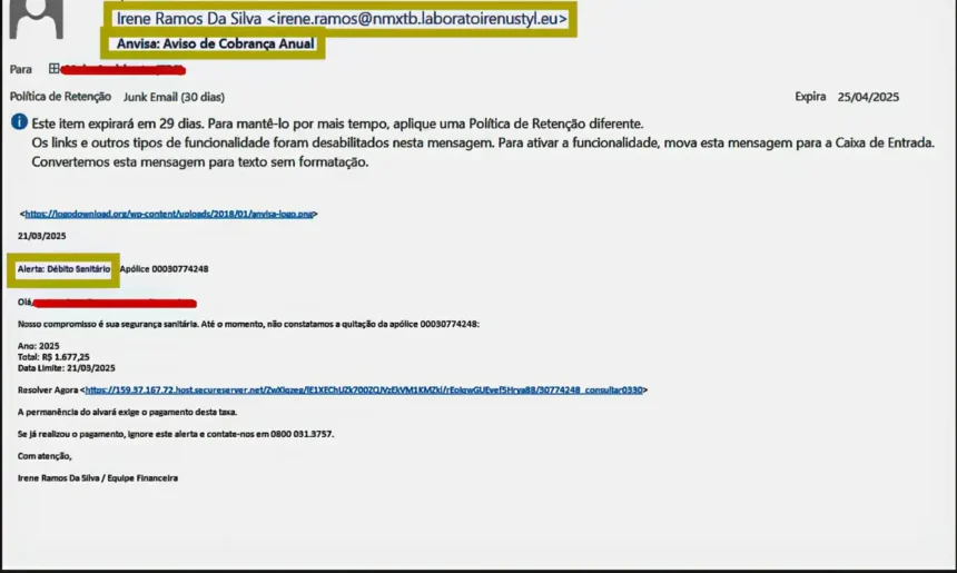Em nota, a Anvisa esclareceu que o remetente não pertence ao domínio da agência.