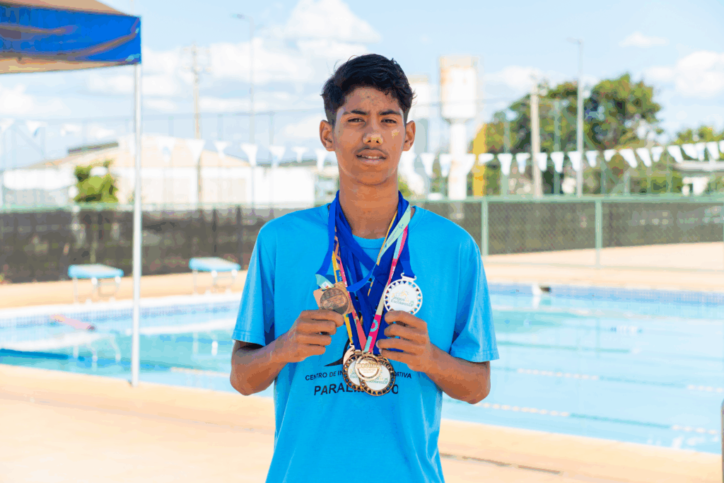 Com deficiência intelectual, Vitor encontrou no esporte um espaço de acolhimento e superação, com apoio essencial da família e dos professores do CID. Começou no atletismo em 2021, mas se apaixonou pela natação, na qual já coleciona várias medalhas. “Foi muito treinamento e apoio. Fiquei muito feliz de subir ao pódio”, contou o atleta, que aprendeu a nadar no Centro Olímpico de São Sebastião.