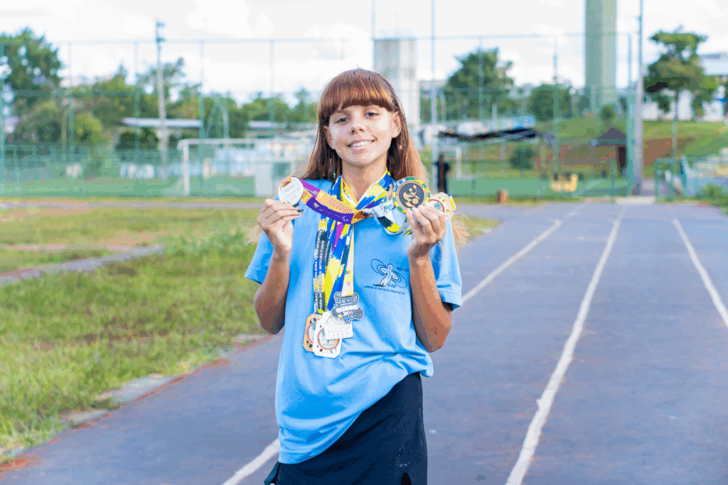 Quem também trilha esse caminho de superação é Juliana Soares, de 17 anos. Com deficiência intelectual, a jovem vai representar o CEM 01 de São Sebastião na prova de atletismo neste fim de semana (14 e 15). Ela começou a treinar em 2021, após a perda do pai durante a pandemia. “No começo, só dava meia-volta na pista e queria parar. Mas a Tia Lu e o Tio Xande acreditaram em mim. Hoje tenho 50 medalhas”, comemora.