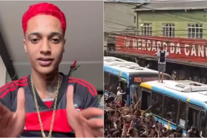 Oruam sobe em ônibus e agita manifestação na saída de MC Poze do presídio