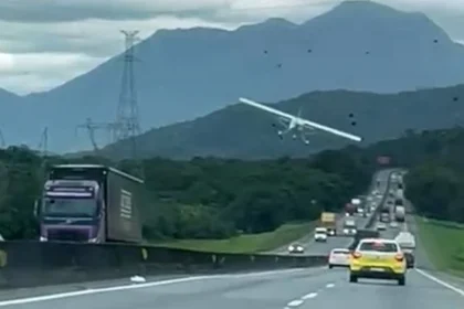 Avião faz pouso em meio a carros na rodovia após pane em SC