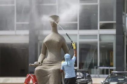 STF suspende julgamento de mulher que pichou estátua A Justiça