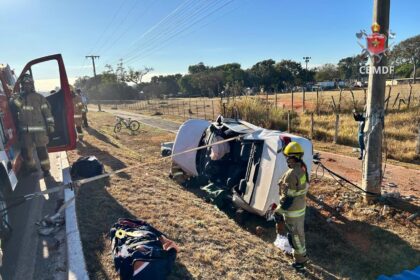 Na manhã desta terça-feira (15), um carro capotou ao colidir em um…