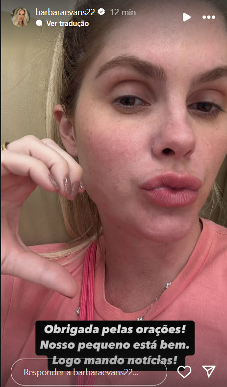 Minutos depois, Bárbara atualizou o estado de saúde do filho: “Obrigada pelas orações! Nosso pequeno está bem. Logo mando notícias!”
