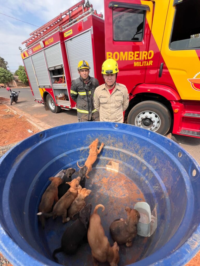 Equipe do Corpo de Bombeiros Militar de Goiás (CBMGO), em Goiatuba, realizou um resgate emocionante ao salvar nove filhotes de cachorro presos em buracos de um terreno onde está sendo realizada uma obra.