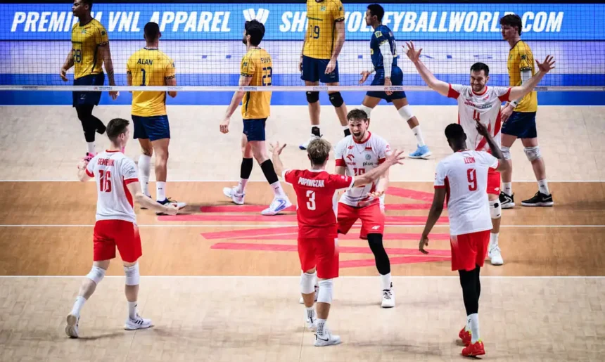 Seleção Brasileira de Vôlei Masculino foi derrotada pela Polônia por 3 sets a 0 (26×28, 19×25 e 21×25) na manhã deste sábado (2) na semifinal da Liga das Nações em Ningbo, na China.