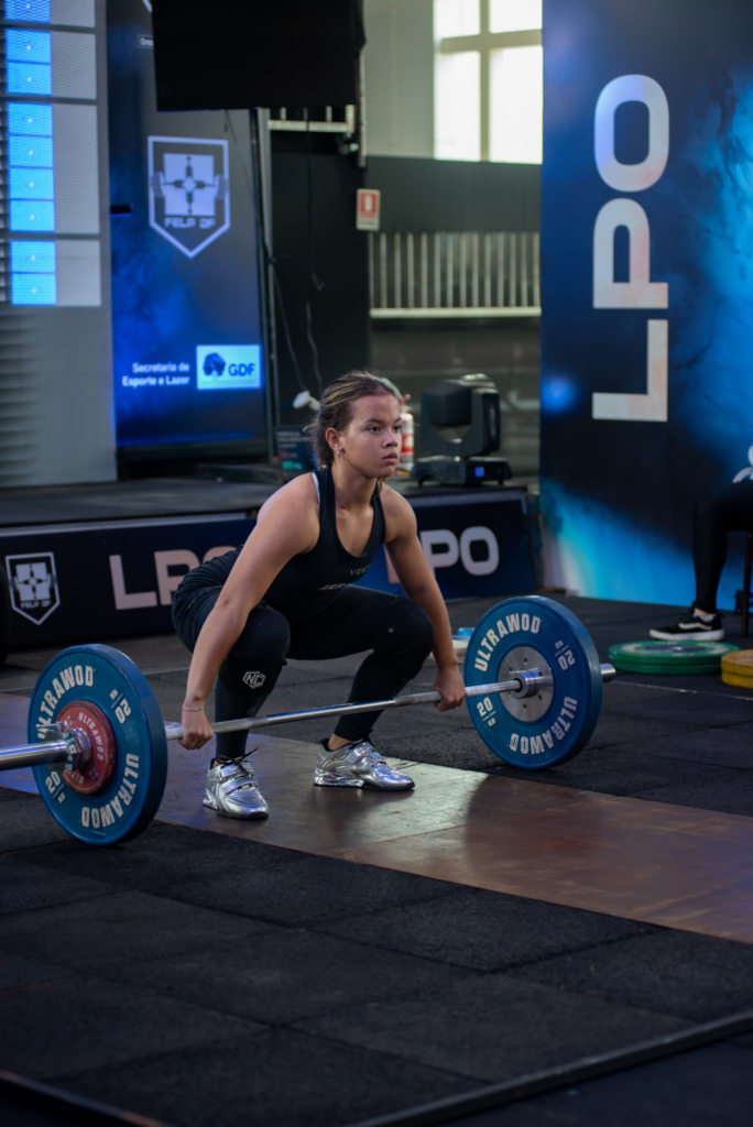 Natasha Rosa, atleta olímpica e referência do LPO brasileiro, sagrou-se campeã da categoria até 49 kg, reforçando o alto nível técnico da competição e inspirando jovens levantadoras presentes no evento.