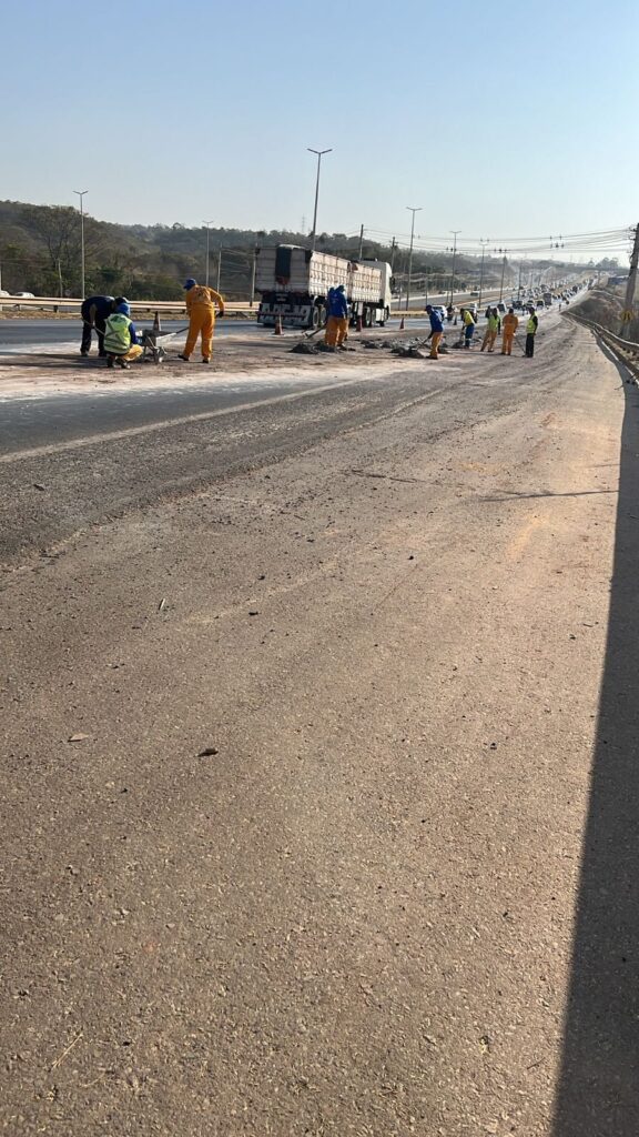 Por meio das câmeras do Centro de Controle Operacional do Departamento de Estradas de Rodagem do DF (DER-DF), agentes de trânsito flagraram o caminhão e acionaram as equipes para sinalizar o local e realizar a limpeza da via.
