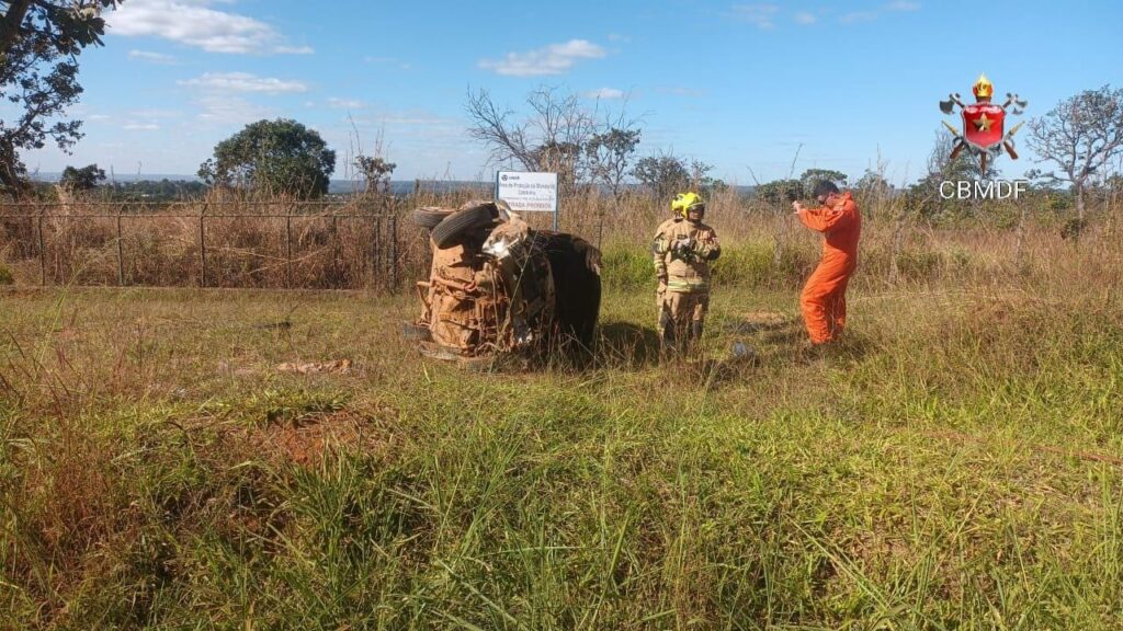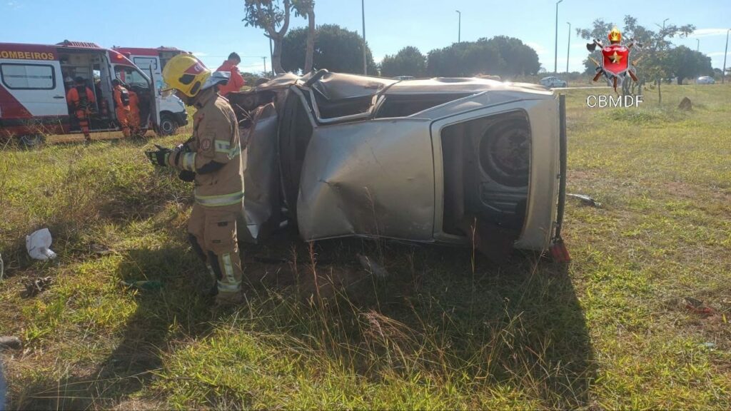 Na tarde desta terça-feira (26), um carro capotou na BR-040 e deixou um motorista ferido. O Corpo de Bombeiros Militar do Distrito Federal (CBMDF) informou que a vítima de 59 anos foi encontrada fora do veículo desorientada. O acidente aconteceu por volta das 14h30.