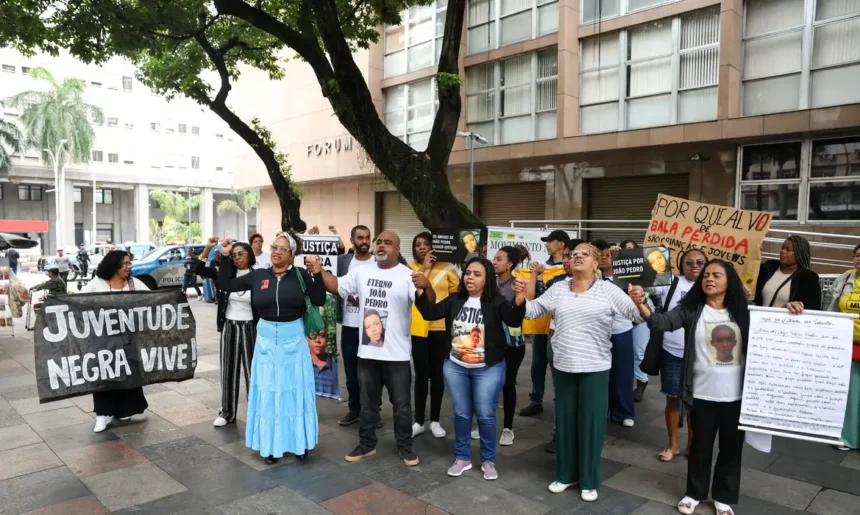 De manhã, a família de João Pedro e defensores dos direitos humanos fizeram uma manifestação em frente à sede do TJRJ, no centro do Rio, cobrando que a corte aceite o recurso.