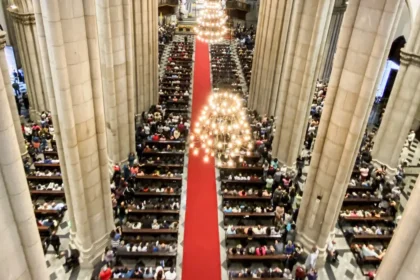 Os bancos e corredores da Catedral da Sé, no centro da capital…