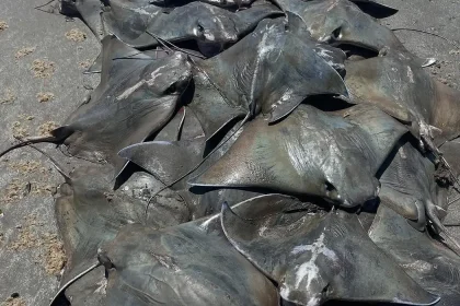 Cerca de 250 raias da espécie Ticonha foram encontradas mortas nesta terça-feira (25)…