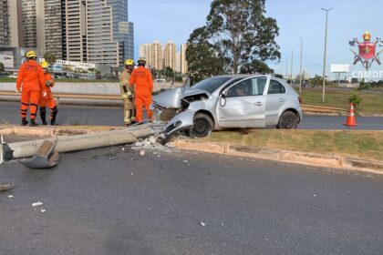 Acidente de trânsito: motorista bate carro em poste e é socorrida na Capital