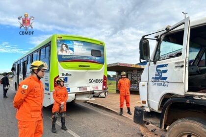 Imagens: acidente entre caminhão e ônibus deixa duas pessoas feridas