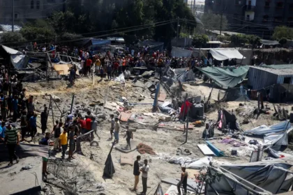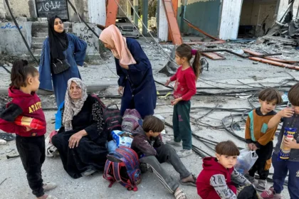 Com medo de nova ofensiva terrestre israelense, milhares de palestinos deixaram suas…