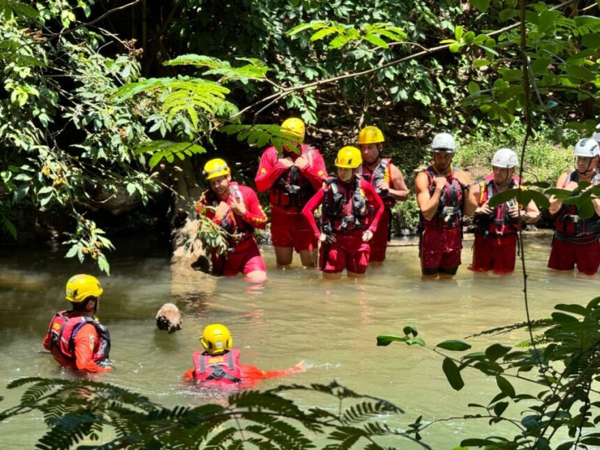 O treinamento foi realizado no córrego do Ribeirão João Leite, na região metropolitana de Goiânia, e contou com a participação de representantes de todos os Comandos Regionais da Corporação.