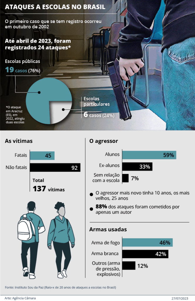 A Comissão de Comunicação da Câmara dos Deputados aprovou projeto determinando que os órgãos públicos criem campanhas para conscientizar os meios de comunicação a não divulgarem informações pessoais de autores de assassinatos em escolas. O objetivo é evitar uma possível glorificação ou incentivo a esses ataques.