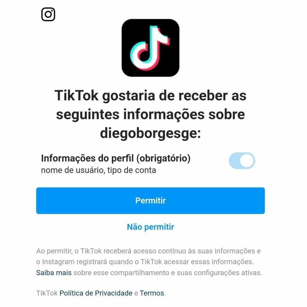 5. Você será redirecionado para o Instagram. Caso você já esteja logado, basta autorizar o TikTok a acessar algumas informações do seu perfil para que o link seja criado;