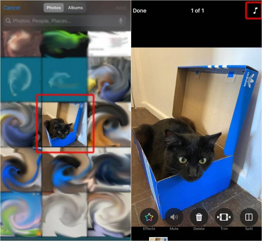 1. Abra o aplicativo Clips e selecione a imagem ou vídeo em que deseja colocar a música;