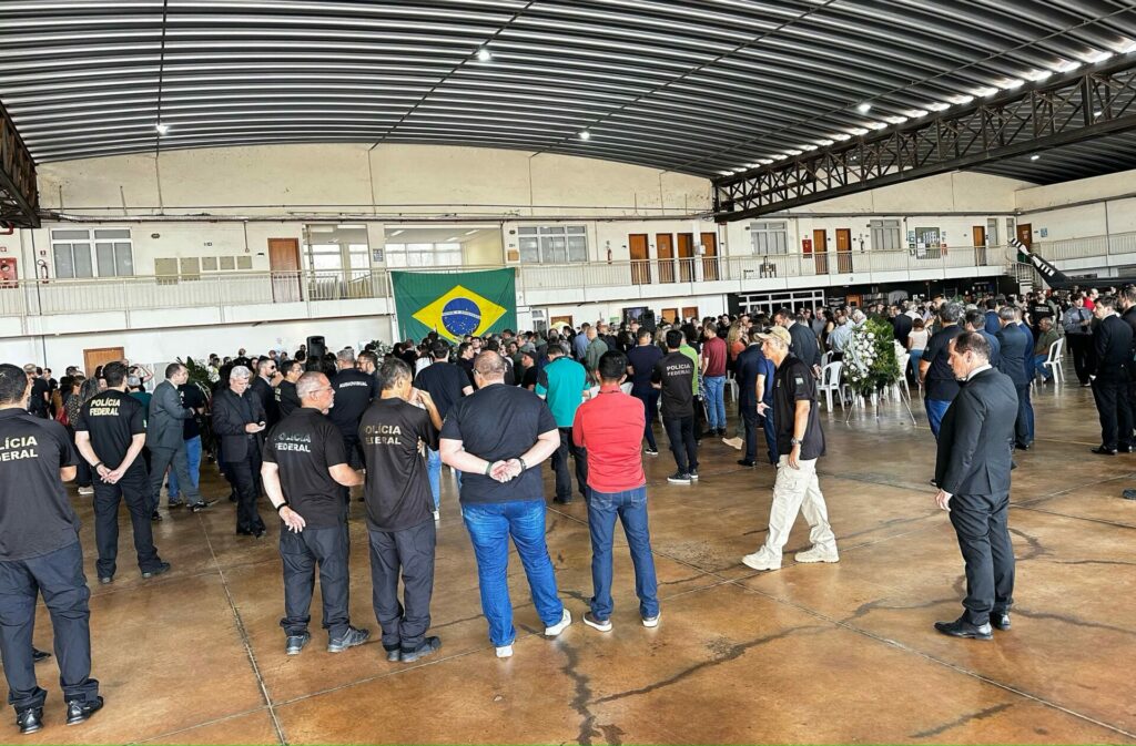 A cerimônia ocorreu das 8h às 10h, no hangar do Comando de Aviação Operacional (Caop) da Polícia Federal, e foi fechada para amigos, familiares e colegas da corporação.