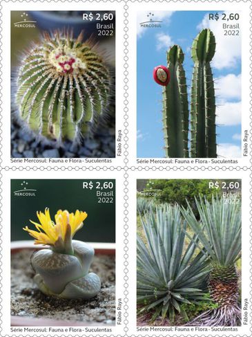 Os Correios lançaram, nesta semana, o selo especial da Série Mercosul: Fauna e Flora – Suculentas. Segundo a empresa, o 14° selo especial anunciado destaca a relevância e a beleza dessas plantas, capazes de acumular água no caule, nas folhas e até nas raízes.