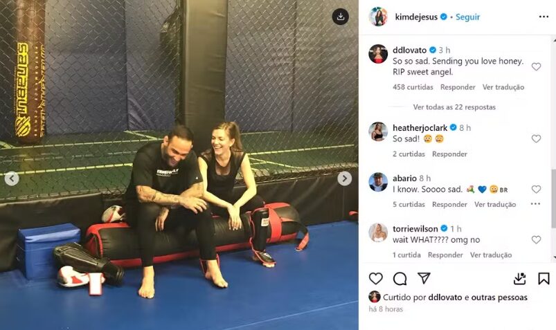 “Muito triste. Enviando amor para você, querido. Descanse em paz, doce anjo”, comentou a estrela pop em uma publicação da artista Kim DeJesus, sobre o falecimento do lutador.