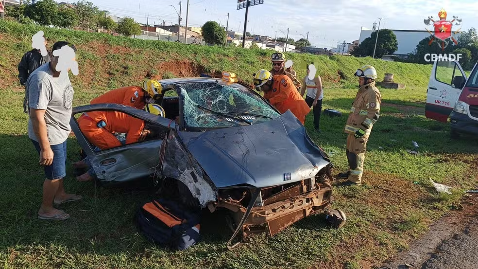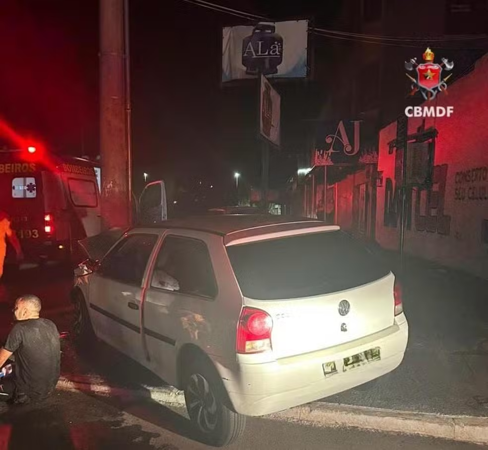 Um carro com quatro pessoas colidiu contra um poste na madrugada deste domingo na Quadra 37 de Brazlândia. De acordo com o Corpo de Bombeiros, três ocupantes apresentavam traumas: