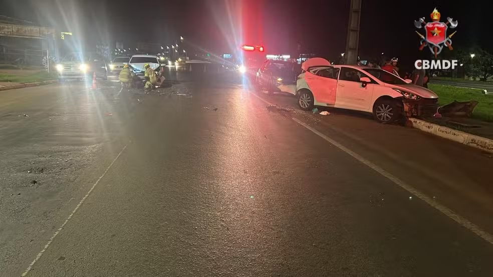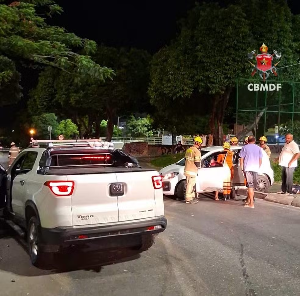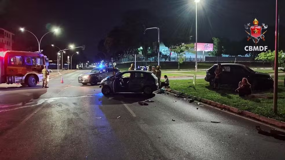 Por volta de 1h38 desta madrugada, os Bombeiros foram acionados para uma colisão entre dois carros na Asa Norte, na altura da 708/709.
