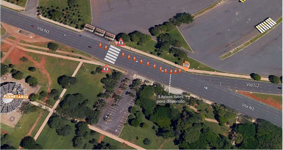Na Via N1, altura do Planetário, será implantado um ponto de travessia de pedestres. A via que contorna a Arena BRB Mané Garricha receberá atenção especial, com equipes dedicadas à sinalização e à fiscalização do estacionamento em locais proibidos, especialmente nas proximidades do Colégio Militar de Brasília e do estacionamento rotativo.