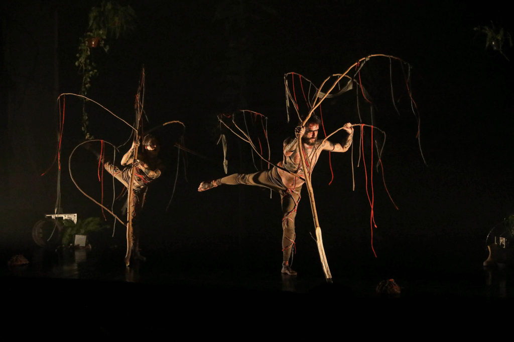 O cenário também dá destaque às questões ambientais e a perda de espaço físico submetida à era tecnológica. “Sempre que a gente traz esse resgate da cultura popular, também trazemos, de maneira direta ou indireta, a preocupação com o meio ambiente. Esses dois seres vão perdendo espaço, mas não somente no imaginário, o espaço onde eles estão, nas matas, nos rios”, complementa a co-diretora e coreógrafa.