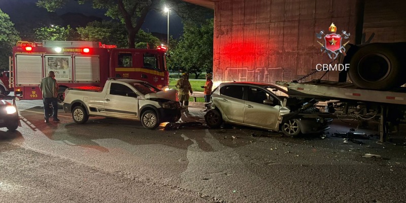 Além do agente, um dos motoristas também se feriu com o acidente. Os dois foram atendidos e encaminhados para um hospital. Segundo o Corpo de Bombeiros Militar do Distrito Federal (CBMDF), as vítimas apresentavam um quadro de saúde moderado. O condutor do caminhão e do segundo veículo não precisaram de transporte médico.