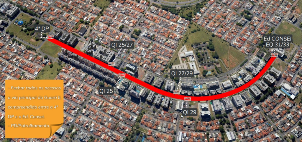 No domingo (22), durante a Rua de Lazer do Guará — das 6h às 17h —, todos os acessos à Avenida Central do Guará II, entre a 4ª Delegacia de Polícia e o Edifício Consei, na EQ 31/33, ficarão fechados. Além das interdições na via, as equipes de fiscalização do Detran-DF farão o controle do tráfego nas imediações do evento.