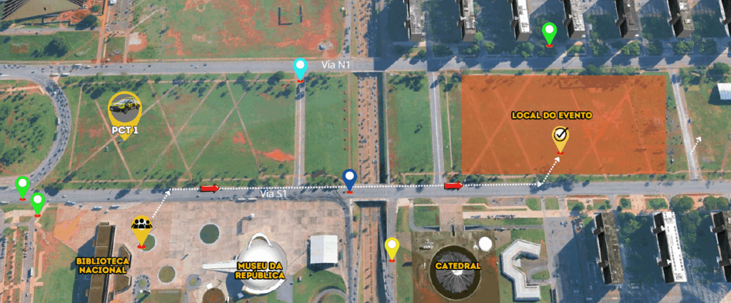 O Detran-DF realizará intervenções no trânsito da via S1, próximo à Biblioteca Nacional, a partir das 23h59 desta sexta-feira (10) — será implantada sinalização com cones na área de desembarque. No sábado, a partir das 16h, a via S1 será interditada, e o tráfego de veículos será desviado para a alça leste da ERB. O acesso do Sesi-Lab à S1 também será bloqueado. Durante todo o evento, equipes do Detran-DF estarão no local para garantir a segurança viária e a fluidez do trânsito.
