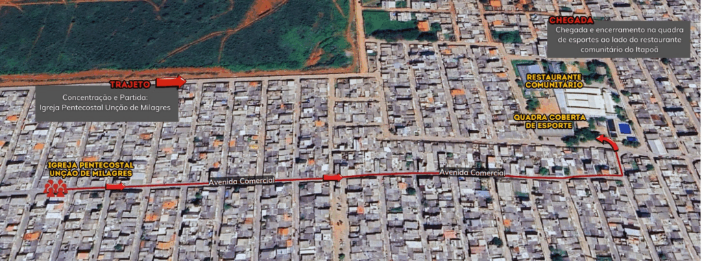 A partir das 8h30, os participantes seguirão pela Avenida Comercial em direção à Quadra Poliesportiva, ao lado do Restaurante Comunitário do Itapoã. As equipes da fiscalização de trânsito acompanharão o grupo durante o trajeto para garantir a fluidez e a segurança viária.