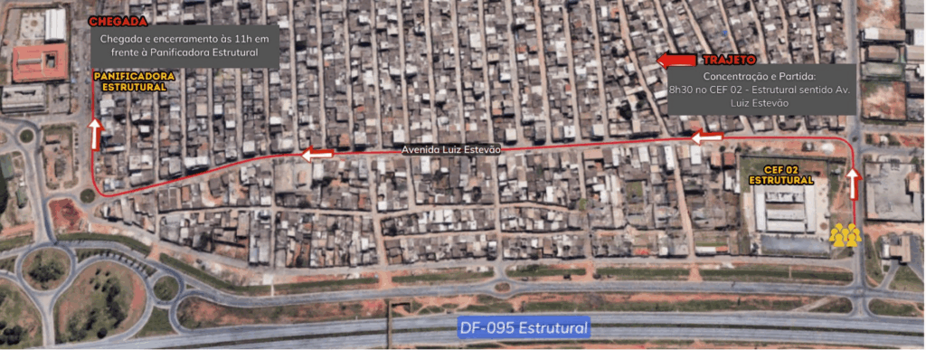 A partir das 8h, os participantes seguirão em caminhada pela Avenida Luiz Estevão até a Panificadora Estrutural. Durante o evento, os agentes farão as interdições no trânsito para a passagem do público.