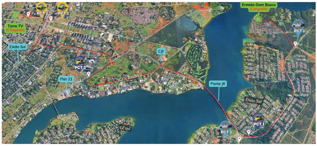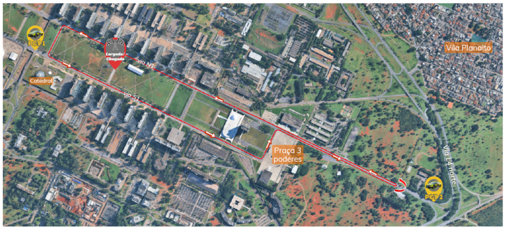 Ainda durante a corrida, ficarão fechadas a faixa da direita e a faixa central da DF-004, na saída do SCES Trecho 2; o acesso da DF-004 para a via S3, na altura da Procuradoria-Geral da República; o acesso da via L2 Sul para o SAUS; o acesso do ERWN para o Eixão; duas faixas da direita da via N1 e da via W3 Norte; além do acesso da via N1 para a W3 Norte.