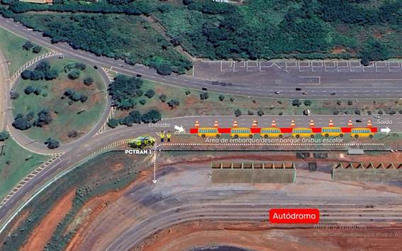 Na sexta-feira (28), em razão da visita de crianças da rede pública de ensino ao Autódromo, o Detran-DF sinalizará uma área de embarque e desembarque para ônibus escolares próxima ao local. A sinalização será implantada na via entre o DVA-I e o Autódromo, na altura da rotatória da Associação dos Pilotos de Ultraleve de Brasília (Apub).