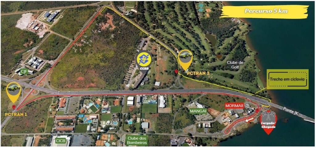 A partir das 6h30 de domingo (25), haverá alterações no tráfego para a corrida Food Run, com percurso de 5 km no Setor de Clubes Esportivos Sul (SCES). A largada e chegada dos atletas será na Orla da Ponte JK, em frente ao Bar Mormaii. O percurso seguirá pela Orla da Ponte JK, contramão do marginal da Via JK, Via do SCES Trecho 2 e Ciclovia do SCES Trecho 2. Para garantir a segurança dos corredores, as vias de acesso ao local da corrida ficarão totalmente fechadas das 6h30 às 9h. Os agentes atuarão em dois Pontos de Controle de Trânsito (PCTran): um na altura da alça de acesso à Via JK e outro na altura do Clube de Golf.
