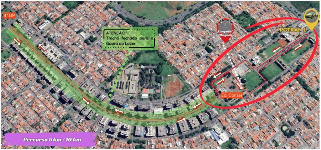 Das 6h30 às 9h de domingo (25), também será realizada a corrida SESC + Corridas – Etapa Guará. Os agentes de trânsito do Detran-DF farão o controle do tráfego para garantir a segurança dos atletas, que largarão às 7h, na EQ 31/33 do Guará II, estacionamento atrás do Edifício Consei. Haverá percursos de 5 km e 10 km, seguindo pela Via SRIA II sentido Avenida Contorno do Guará, fazendo o último retorno para voltar ao Edifício Consei. Deste ponto em diante será realizado dentro da área da Rua do Lazer do Guará, realizado todo último fim de semana do mês e interdita o trânsito de veículos no trecho que vai do Edifício Consei até a 4ª Delegacia de Polícia.