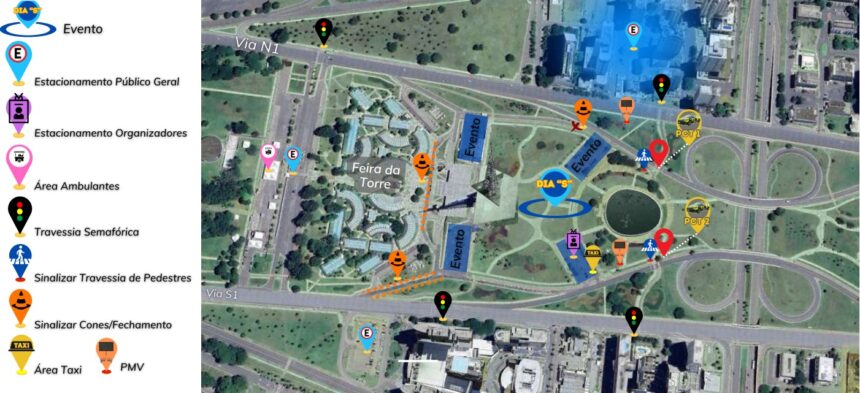 O acesso ao estacionamento superior norte da Torre de TV será fechado e, em alguns pontos, serão posicionados cones ao longo do meio fio para inibir o estacionamento irregular. Também serão utilizados painéis eletrônicos de mensagens para orientar os condutores e pedestres. Durante o evento, as equipes do Detran-DF realizarão o patrulhamento na região para garantir a segurança e a fluidez do trânsito.