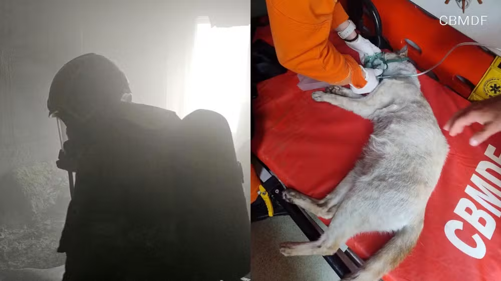 O Corpo de Bombeiros resgatou dois gatos de um apartamento que teve um princípio de incêndio na Asa Norte, em Brasília, na manhã deste domingo (22).