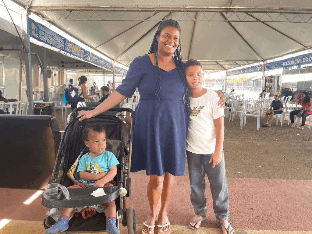 Selma Vargas levou os dois filhos para aproveitar as oportunidades de atendimento e lazer oferecidas pelo GDF Mais Perto do Cidadão, em Brazlândia | Fotos: Roberto Peixoto/Sejus
